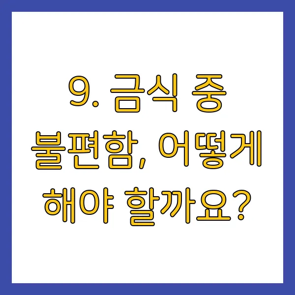 만성 질환 때문에 매일 약을 복용 중이라면, 금식 중에도 약 복용 여부를 의료진과 꼭 상담하세요! 일부 약물은 공복 복용 시 위장장애를 일으키거나 약효가 변할 수 있습니다.