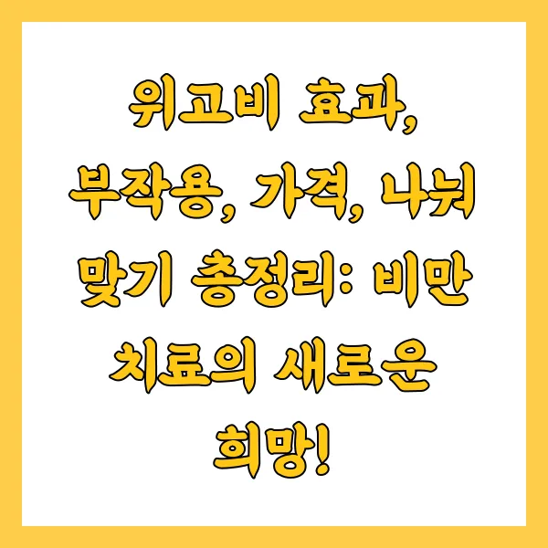 이 글에서는 위고비의 효과, 부작용, 가격, 나눠 맞기 등 핵심 정보를 꼼꼼하게 분석하여, 여러분의 현명한 선택을 돕고자 합니다. 자, 그럼 위고비의 세계로 함께 떠나볼까요?!