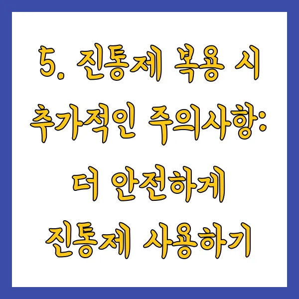 - 진통제 복용 후에도 통증이 지속되거나 악화될 경우, 즉시 의사의 진료를 받아야 합니다.
