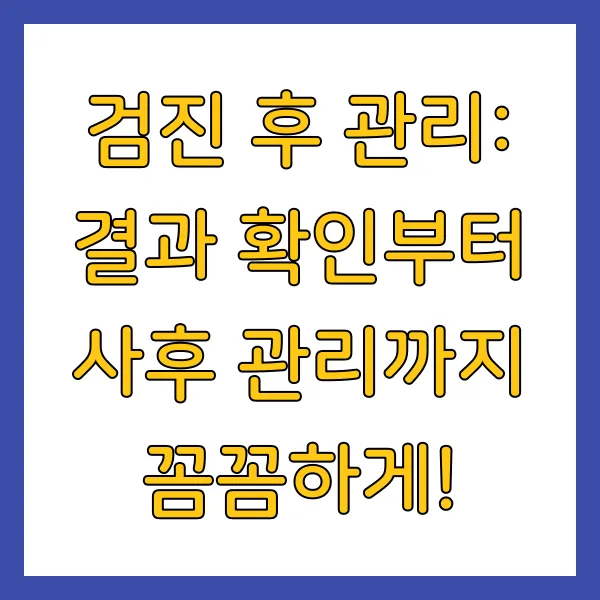 검진 결과는 우편, 이메일, 모바일 앱으로 확인 가능! 이상 소견이 있다면? 즉시 병원 방문! 정밀 검사와 상담을 통해 적절한 조치를 받아야 합니다. 만성질환 진단을 받았다면? 의료진의 지시에 따라 꾸준히 관리하고 생활 습관 개선에도 힘써야겠죠?